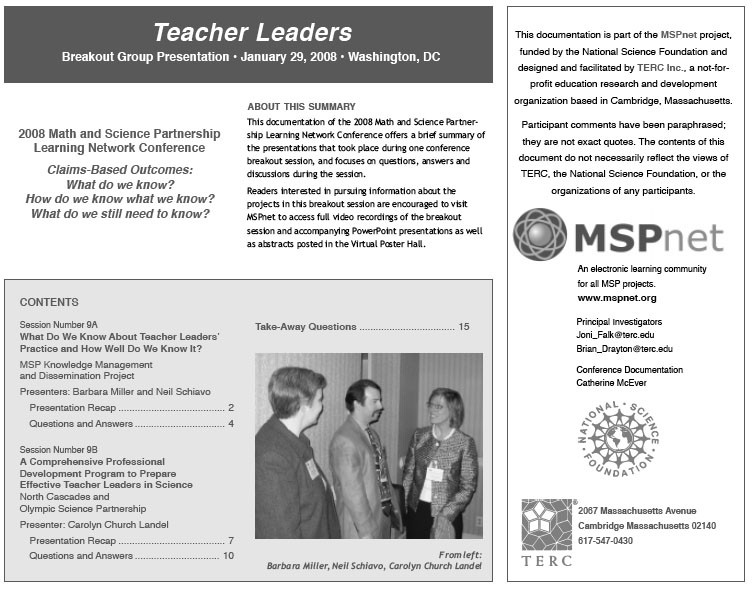Breakout Session Number 9A MSP Project: MSP Knowledge Management and Dissemination Project Co-PIs: Barbara Miller and Iris Weiss Presenters: Barbara Miller and Neil Schiavo, EDC |