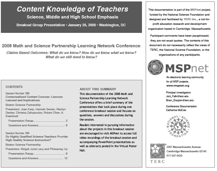 | View Breakout: Content Knowledge of Teachers: Science, Middle and High School Emphasis
