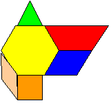 she referred to this configuration as a "funky cookie." After making the cookie, she asked the students what fraction the yellow hexagon block represented. She then asked if she could share the cookie fairly by giving each student one of the shapes that made up the cookie.