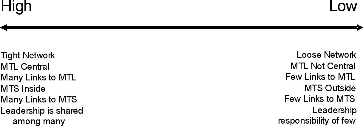 In addition, this work has enabled us to develop a working continuum of distributed leadership as shown in Figure 2, below. The continuum indicates what we believe are positive and negative exemplars. Schools with strong distributed leadership will likely exhibit characteristics that lean toward the High end of the continuum. Schools with emerging distributed leadership will exhibit characteristics toward the lower end. Rarely do schools exhibit all high or low characteristics.