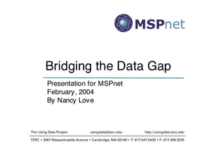I think that with these building blocks, MSPs can be well prepared to bridge that data gap and to get excited about data and feel more empowered to be able to use data as the catalyst and guide to improving the teaching and learning of science, that I know you're all committed to. |