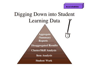 Not only are we concerned about multiple measures, but also multiple levels of the data, so that teachers are able to drill down deeply into the data to derive maximum value. That includes looking at the top level, kind of a superficial aggregate. But that's only the beginning of the conversation. Digging down and looking at disaggregated results, how subgroups are performing, digging down deeper to look at specific skills and clusters of skills, what are the strengths and weaknesses, digging down even deeper to look at patterns around items. Which items are kids missing a lot and why, and then grounding all of this analysis in careful examination of student work, which I think provides the richest source of understanding of kids' thinking. |