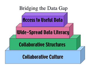Here's what I see as the essential building blocks: A collaborative culture, collaborative structures, widespread data literacy, and access to useful data. So let's take a look at each of these in a little more depth. |